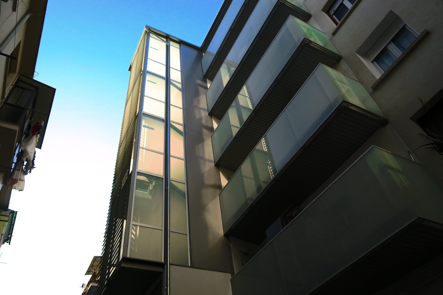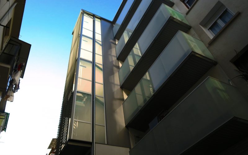 Eliminación de barreras arquitectónicas, instalación de ascensor con salida de incendios trasera.